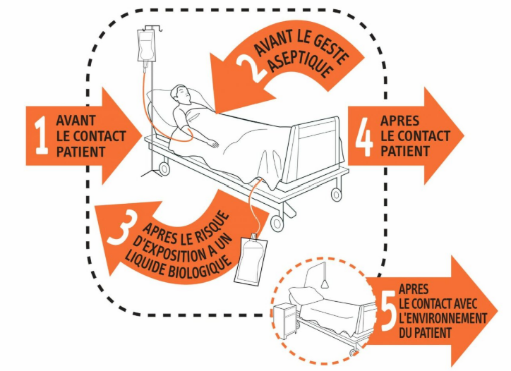 Quelles sont les 5 indications de l'hygiène des mains ?